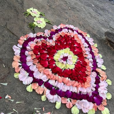 This ceremony is a meditative and intentional practice of creating beauty, balance, and connection through flowers. A flower mandala is a sacred geometric arrangement of petals, leaves, and natural elements, used to honor life transitions, manifestations, or simply the present moment.