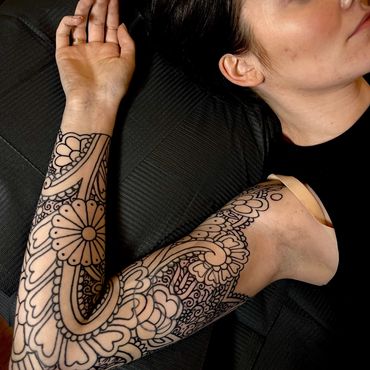 Ornamental tattoos are a celebration of art, culture, and timeless beauty, inspired by the intricate patterns and rich textures found in folk art and textiles from around the world. My approach blends influences from Indian mehndi, African scarification and weaving, Polish folk motifs, and other global decorative traditions to create unique, flowing designs that feel like a natural extension of the body.