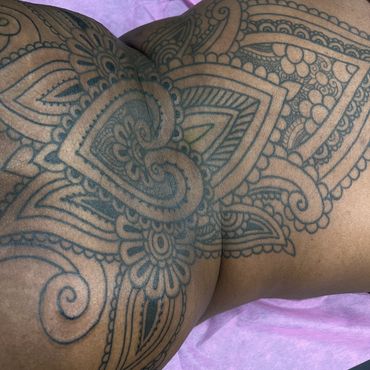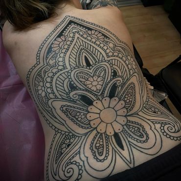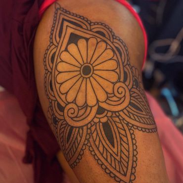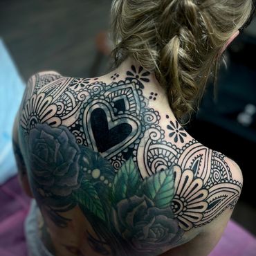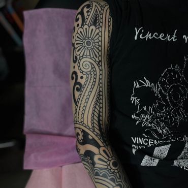 Custom, Hand-Drawn Designs – Every tattoo is designed with the client in mind, flowing harmoniously with the natural curves of the body. Whether it's a bold chest piece, a delicate hand ornament, or a large-scale back design, I ensure that each piece is unique and deeply personal.